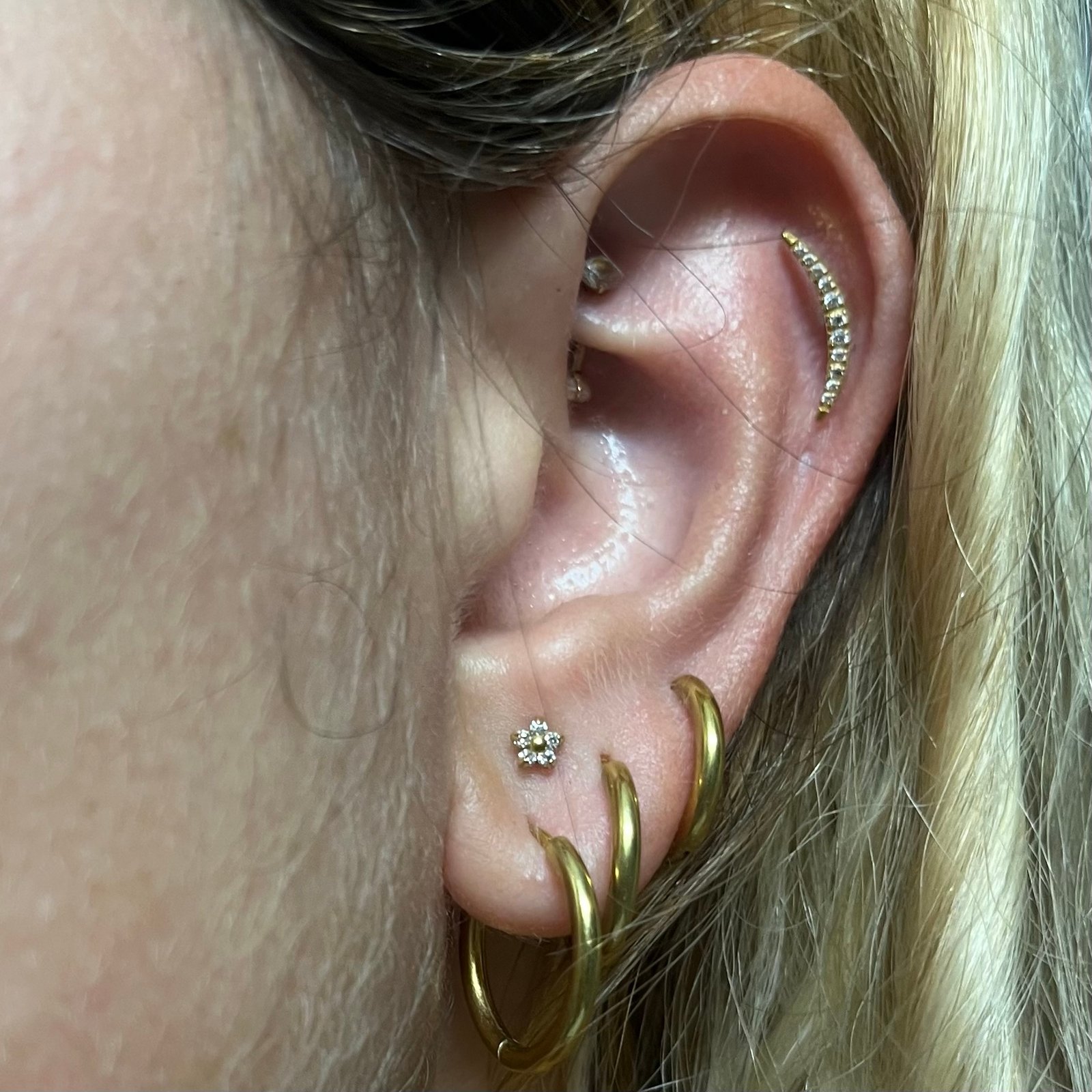 Labret interne (filetage dans la barre) doré d’1,2mm d’épaisseur, avec une étoile ornementée de cristaux au centre. Avec sa dimension de 8mm. Il est idéal pour l’ensemble des piercings de l’oreille.